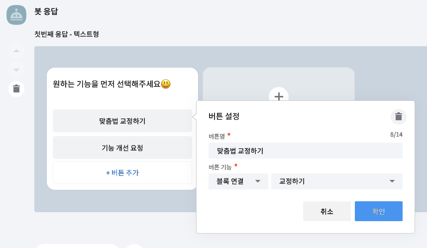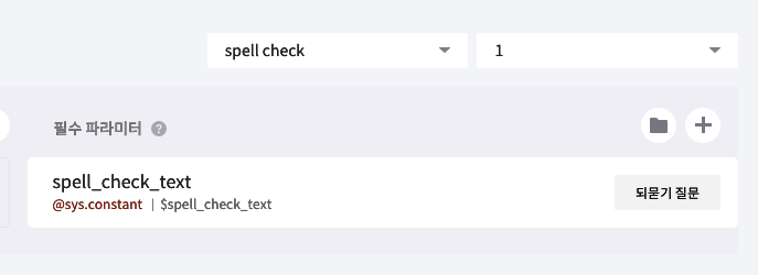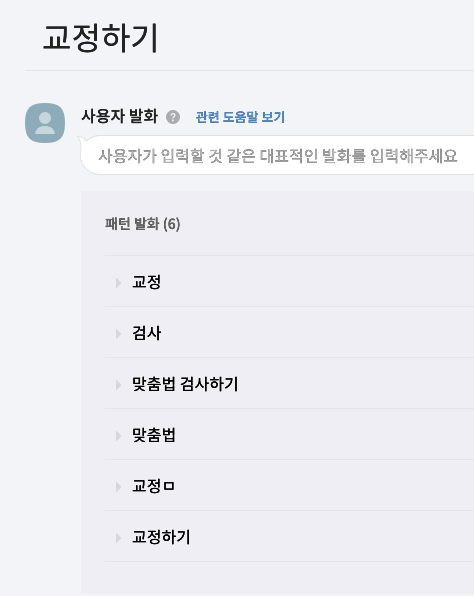 교정하기 블록에는 사용자 발화를 추가해놨다.